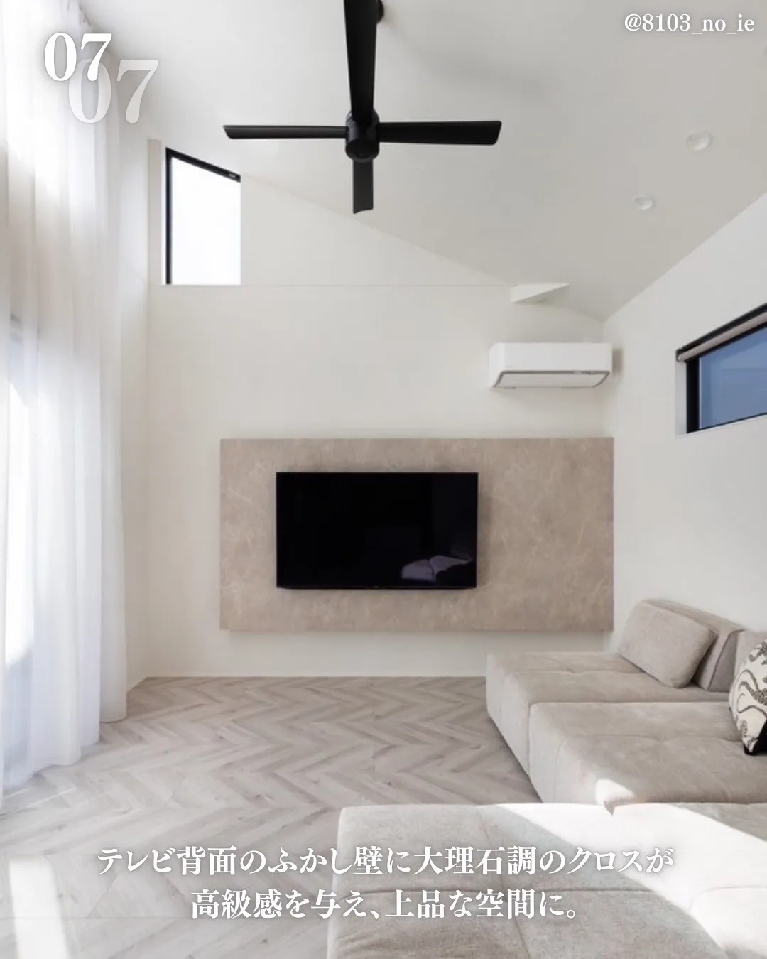 大理石調クロス×テレビ背面で高級感のあるリビング