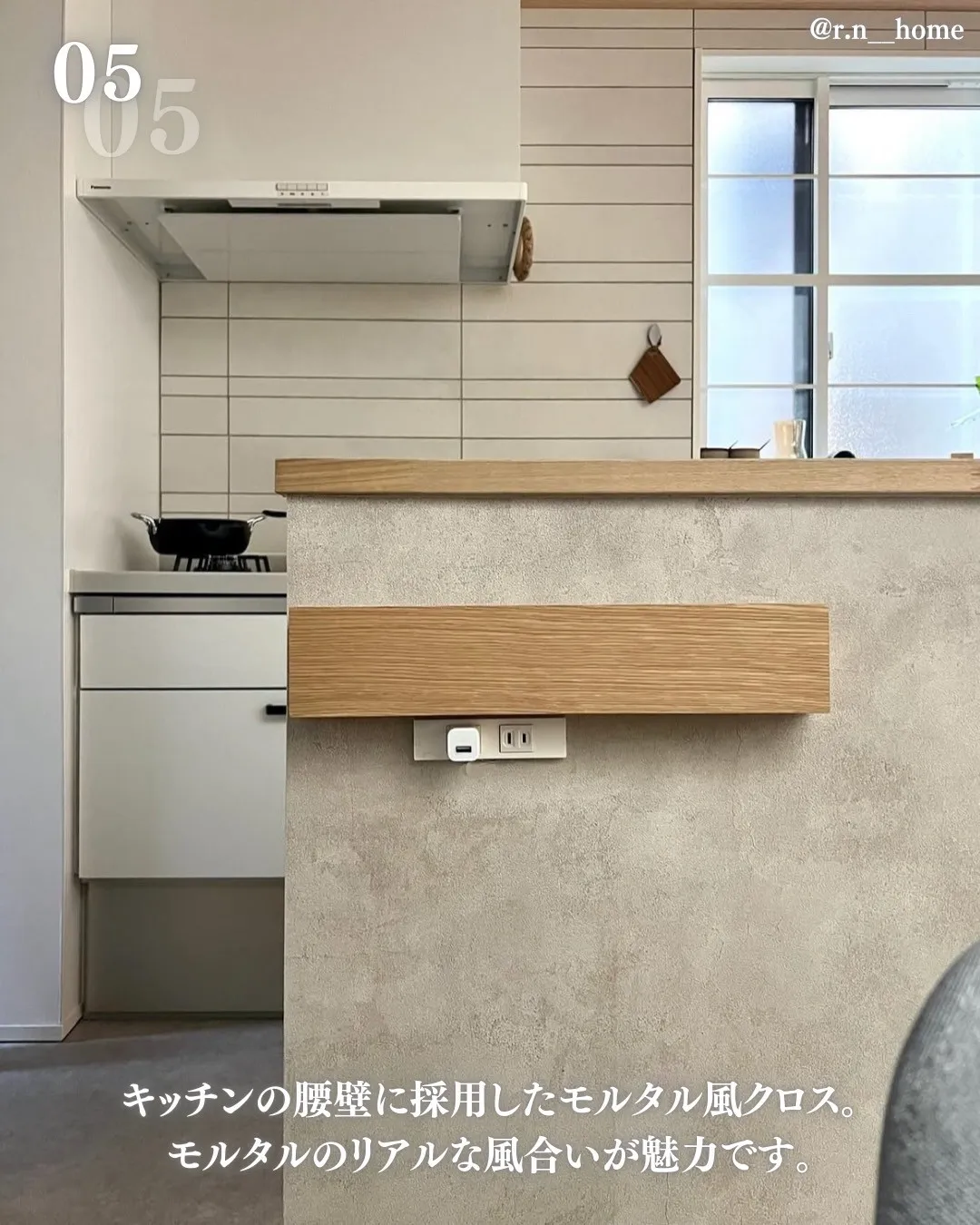モルタル風クロスでキッチン腰壁をスタイリッシュに