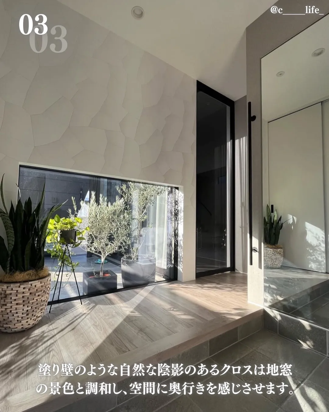 塗り壁調クロスで自然光と調和するやわらかな空間