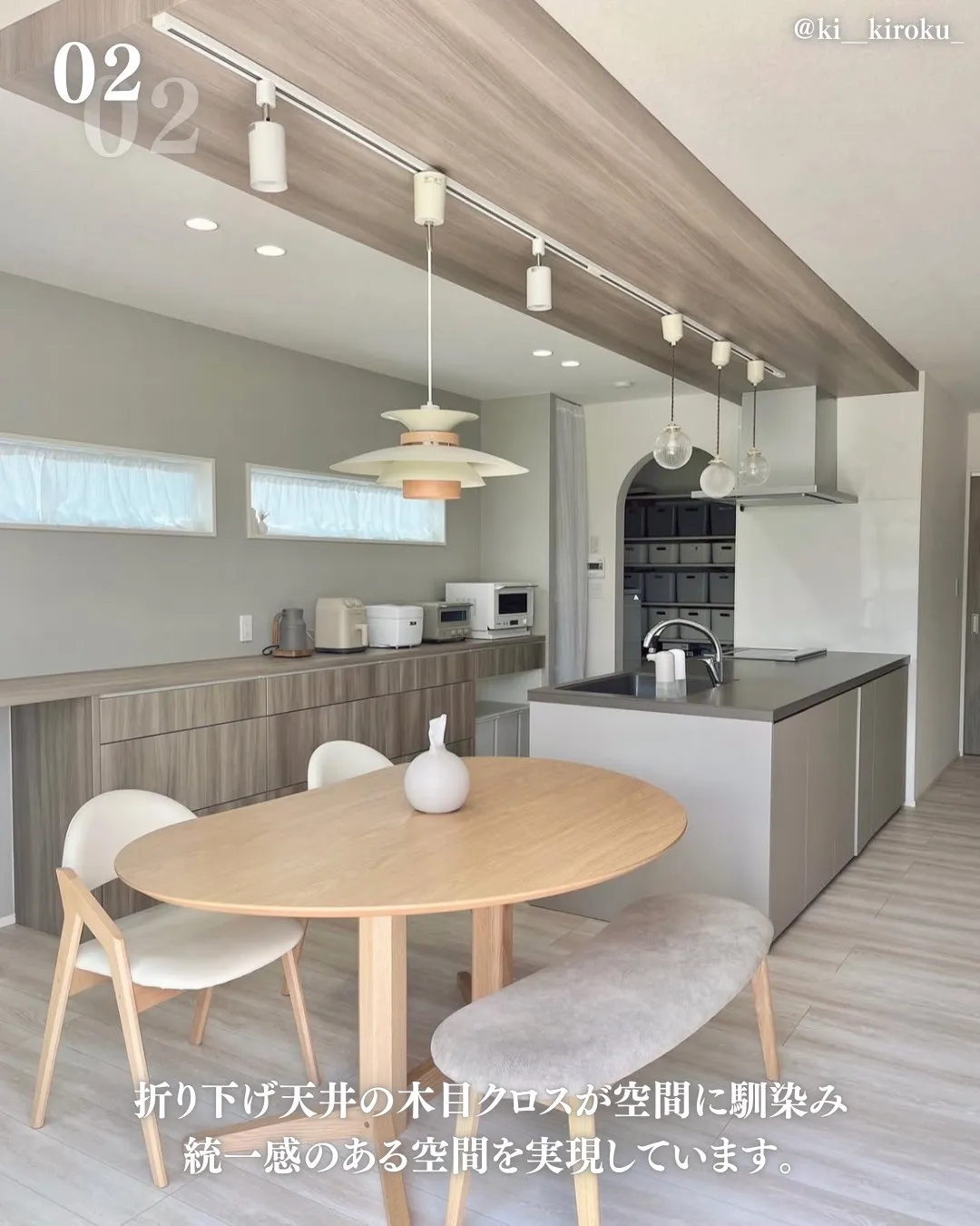 木目クロス×折り下げ天井で統一感のある空間