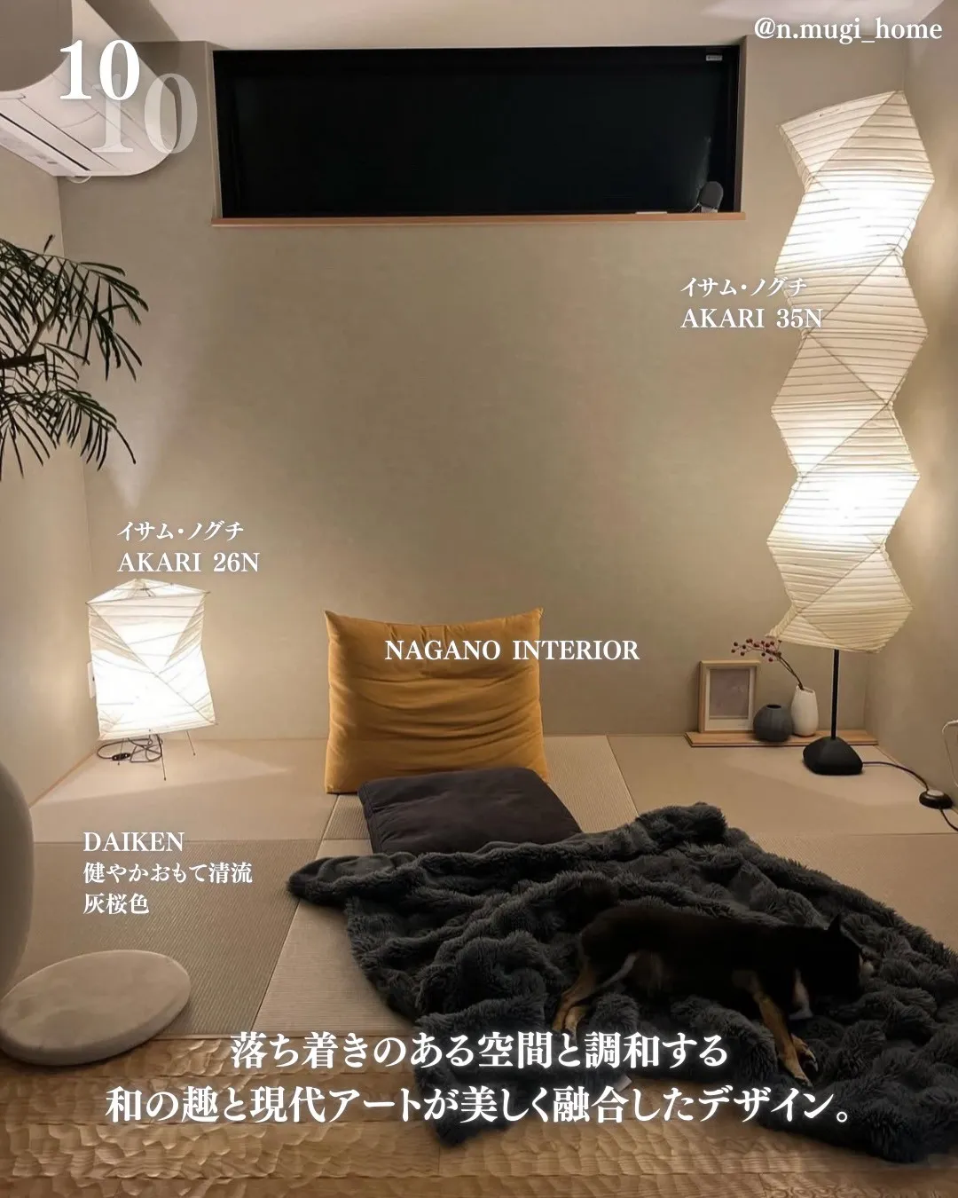イサム・ノグチのAKARIは落ち着きのある空間と調和する和の趣と現代アートが美しく融合したデザイン。