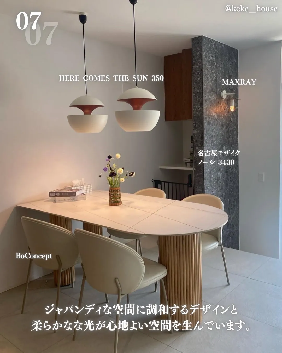 HERE COMES THE SUN 350はジャパンディな空間に調和するデザインと柔らかなな光が心地よい空間を生んでいます。