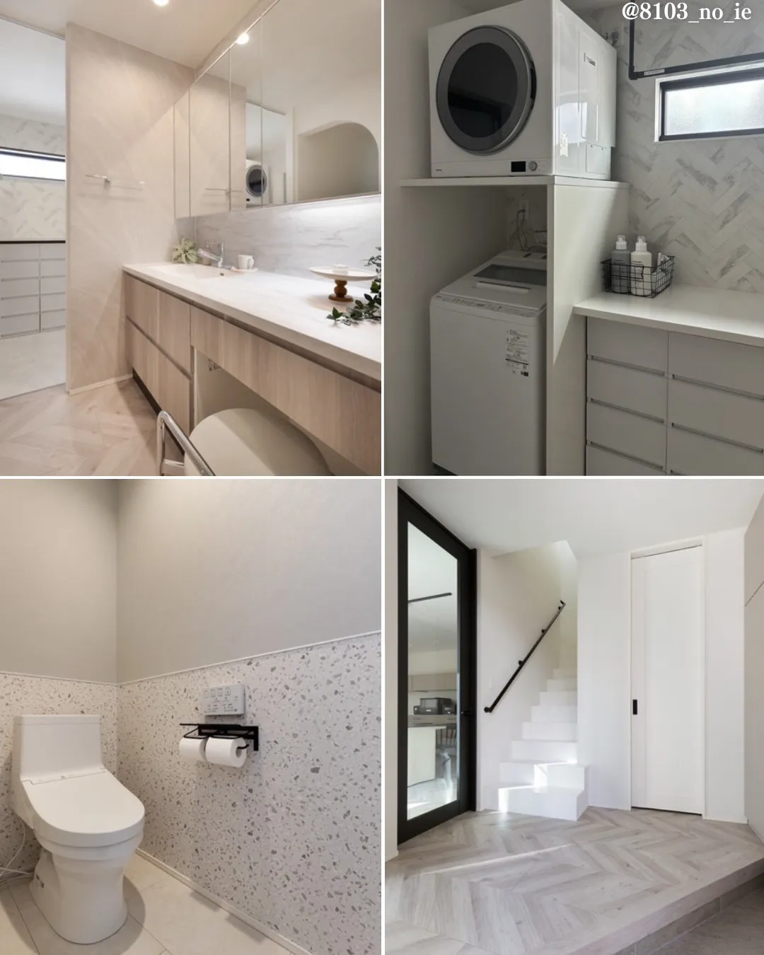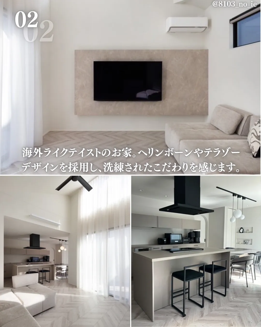 ヘリンボーンやテラゾーデザインを採用し、洗練されたこだわりを感じます。