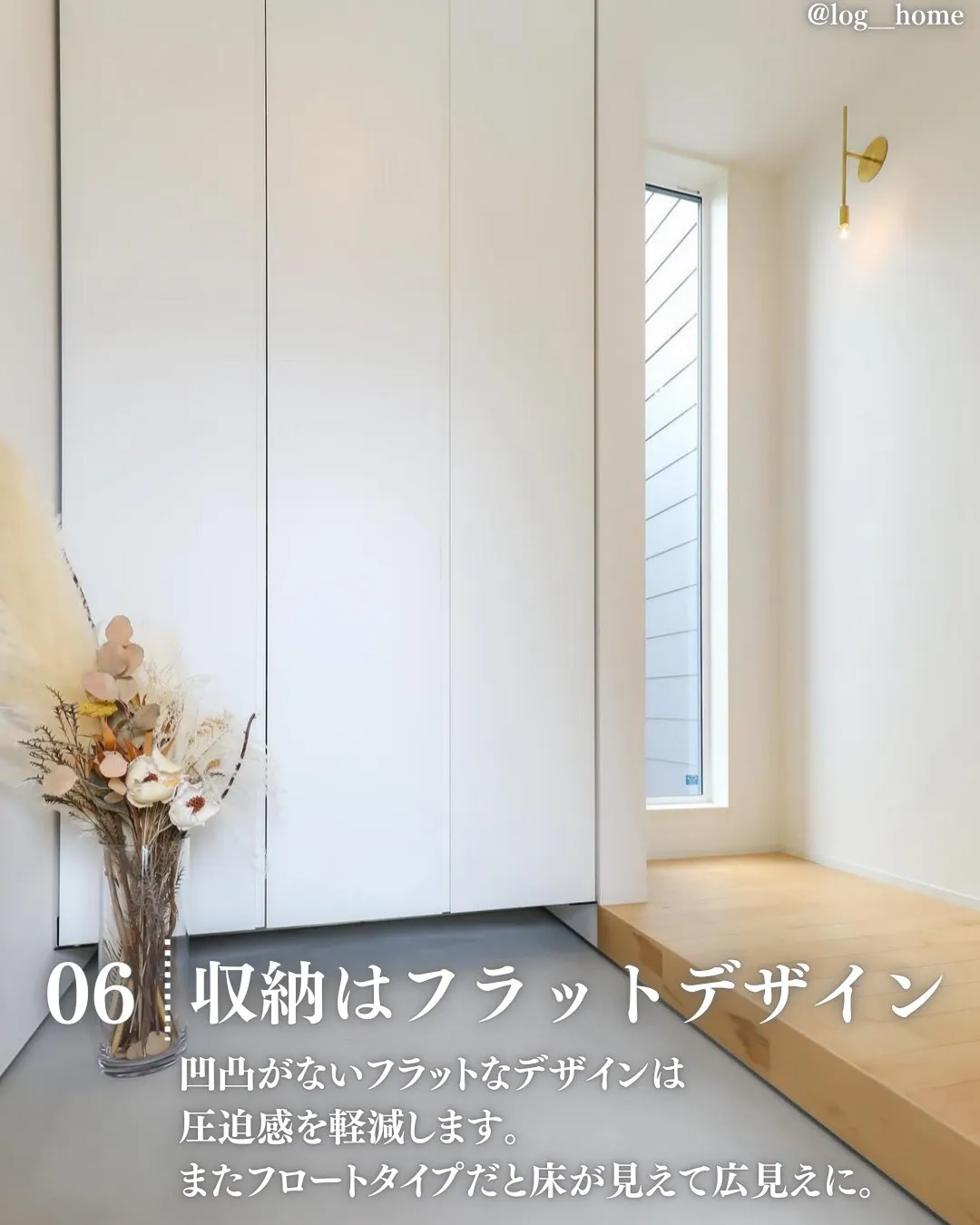 クロス・天井・シューズボックスなどのメインカラーを明るめのカラーにすると、奥行きと広がりを感じさせます。