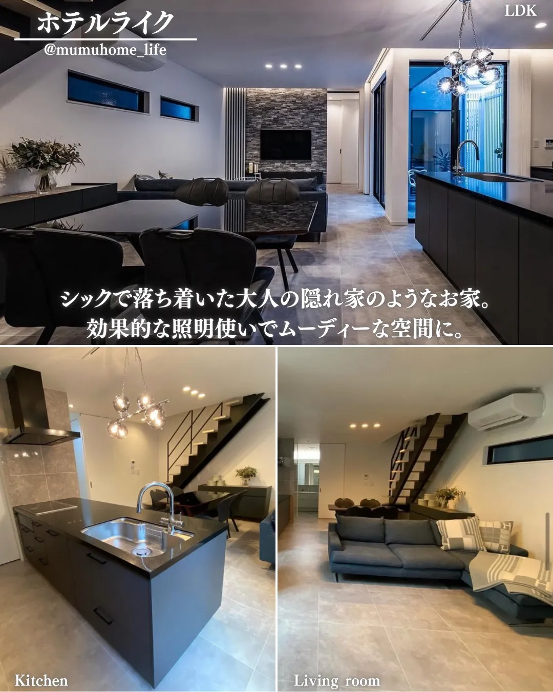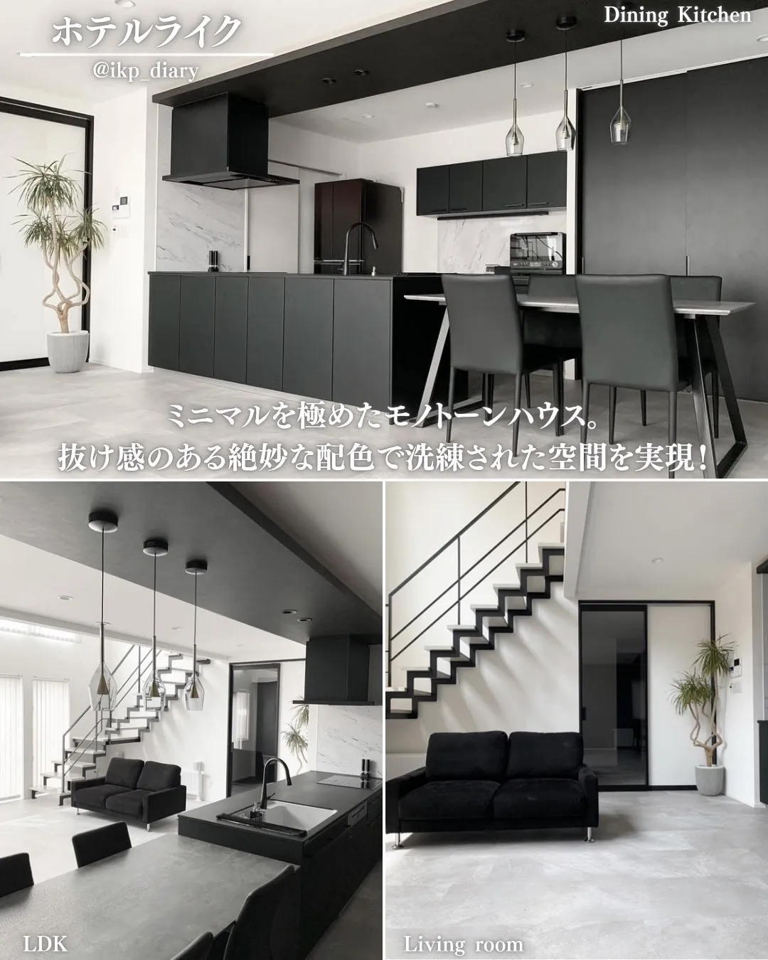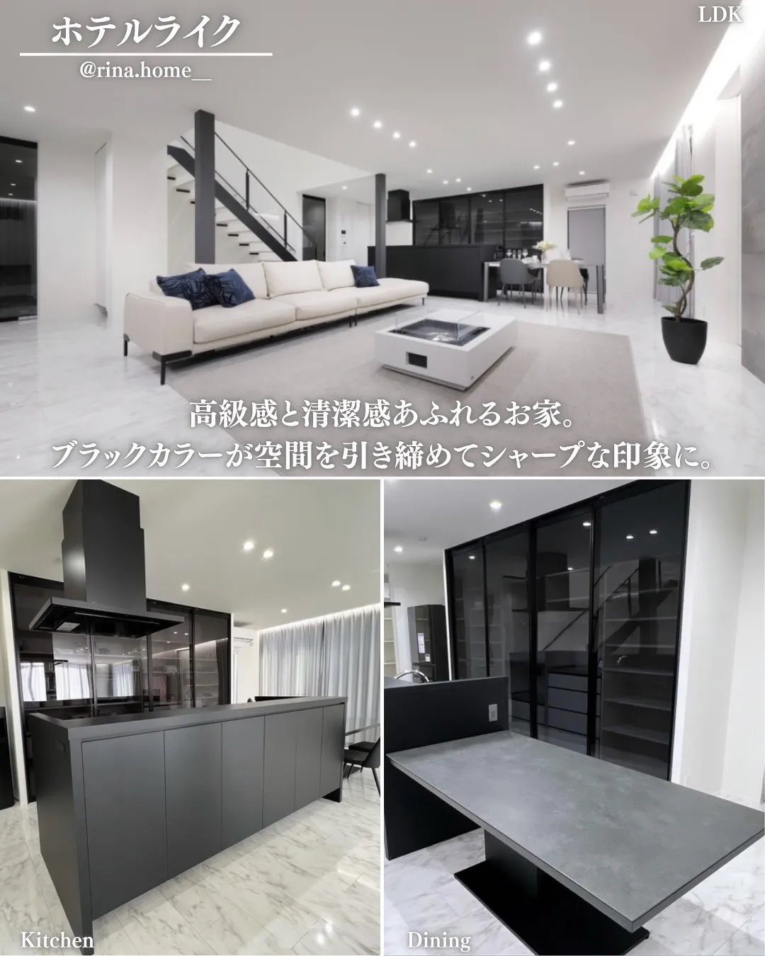 ブラックカラーが空間を引き締めてシャープな印象に。