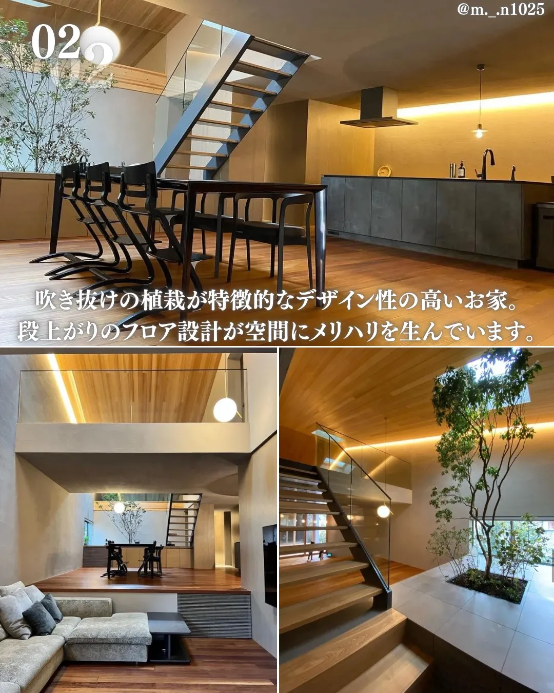 02 吹き抜けの植栽が特徴的なデザイン性の高いお家