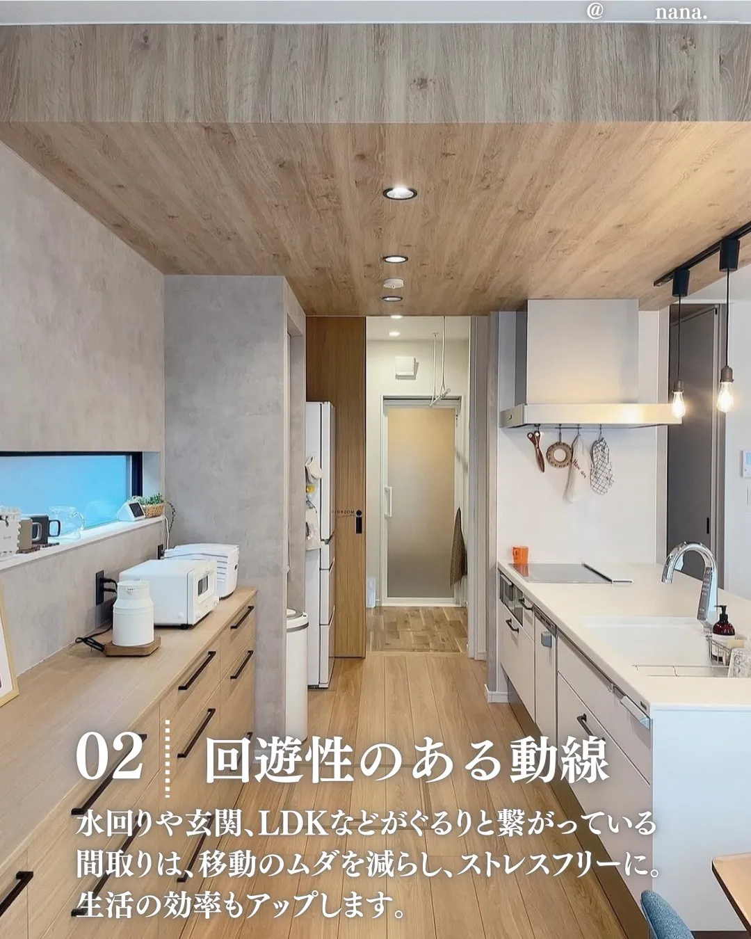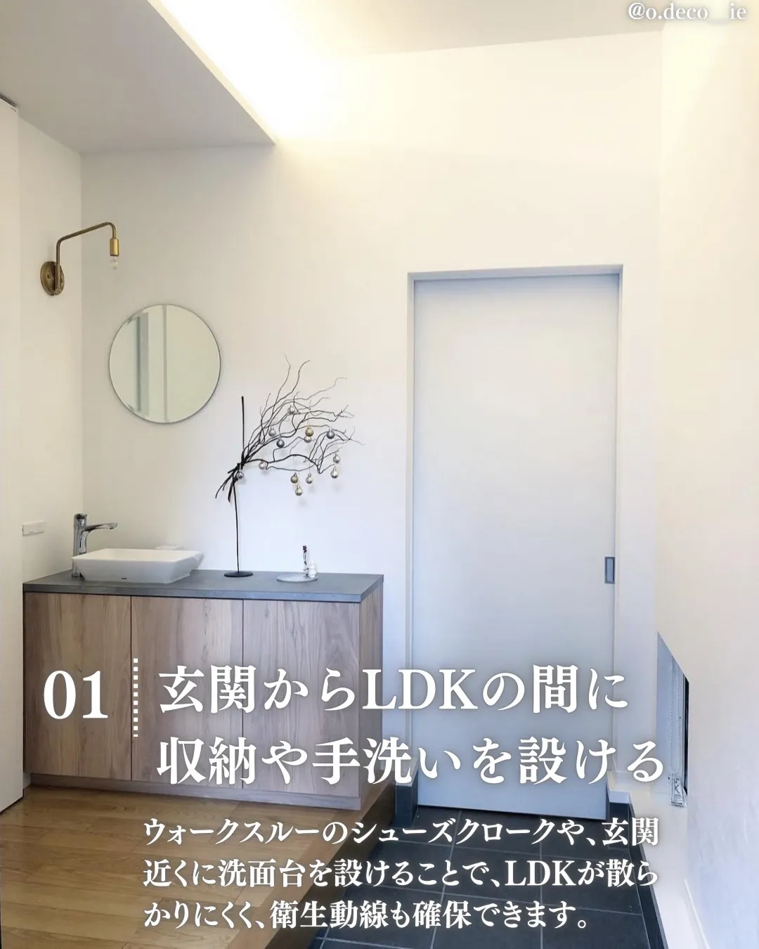 ウォークスルーのシューズクロークや、玄関近くに洗面台を設けることで、LDKが散らかりにくく、衛生動線も確保できます。