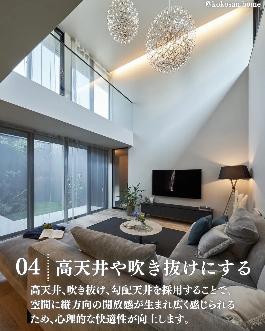 高天井や吹き抜けにする