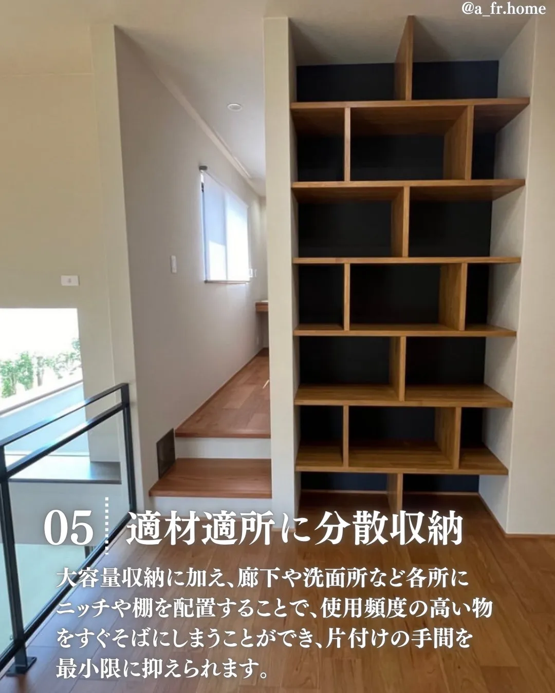 大容量収納に加え、廊下や洗面所など各所にニッチや棚を配置することで、使用頻度の高い物をすぐそばにしまうことができ、片付けの手間を最小限に抑えられます。