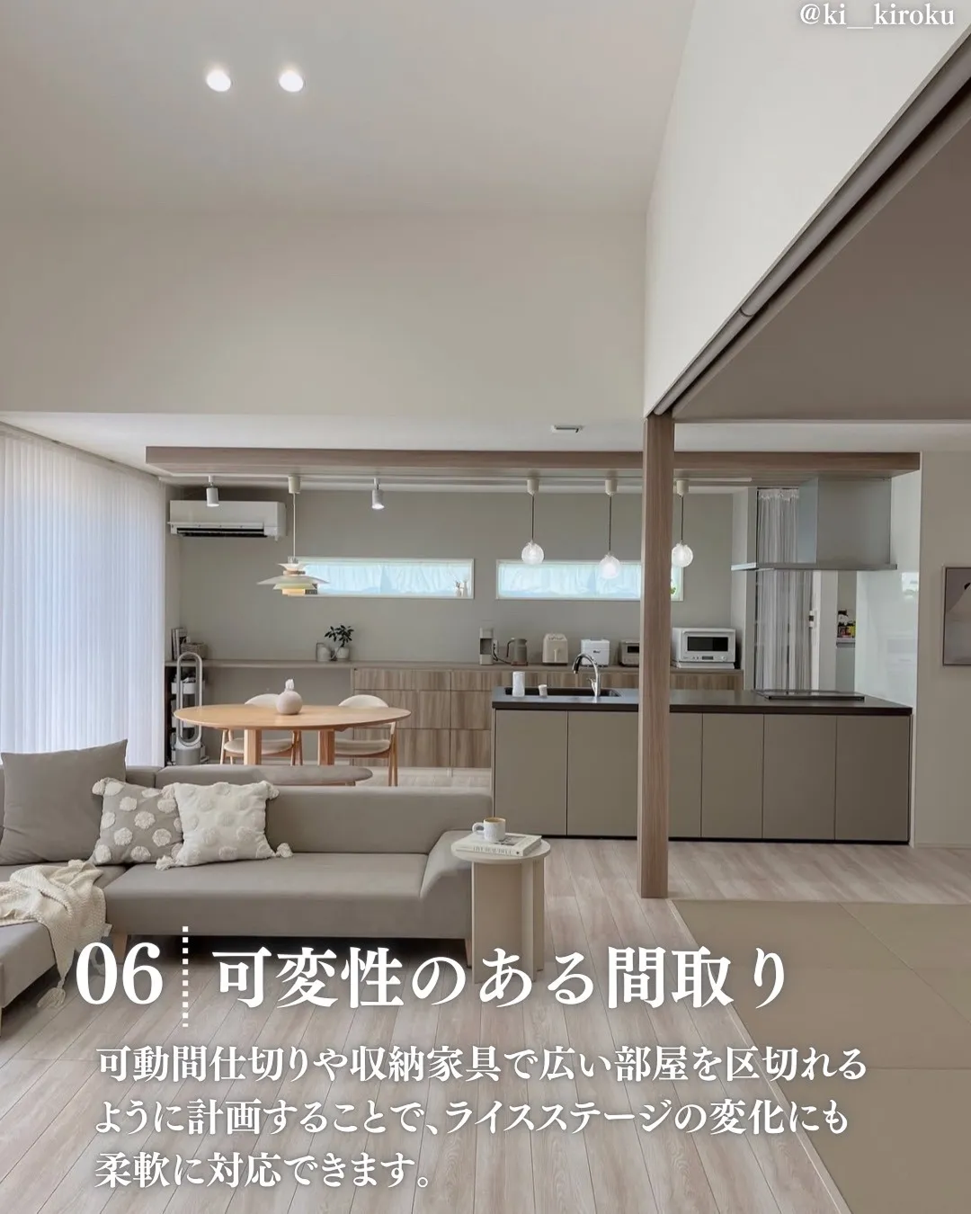 可動間仕切りや収納家具で広い部屋を区切れるように計画することで、ライフステージの変化にも柔軟に対応できます。