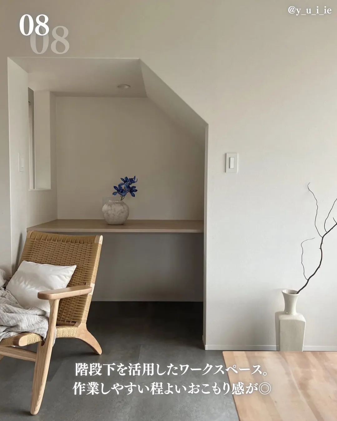 階段下を活用したワークスペース。作業しやすい程よいおこもり感が◎