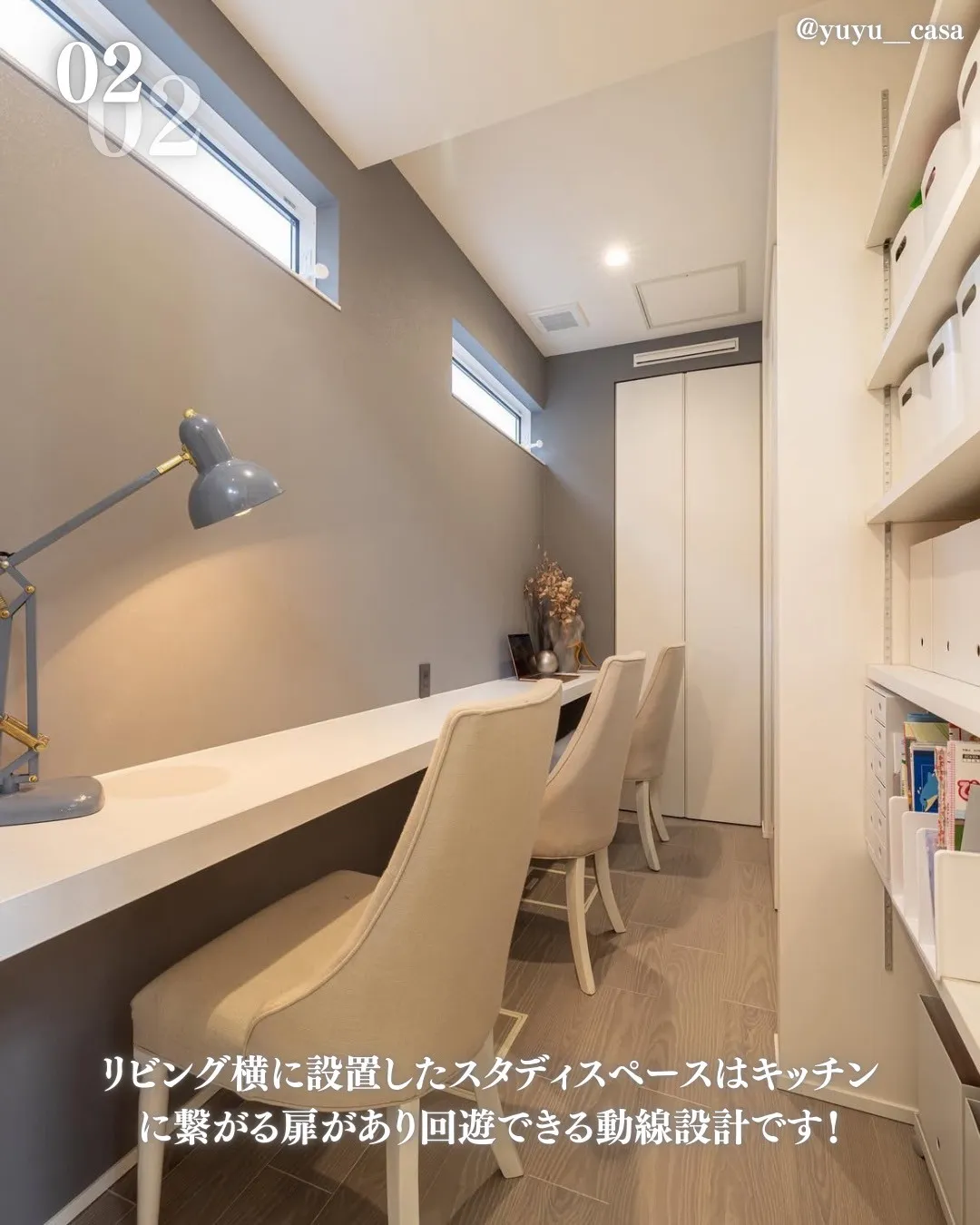 リビング横に設置したスタディスペースはキッチンに繋がる扉があり回遊できる動線設計です!