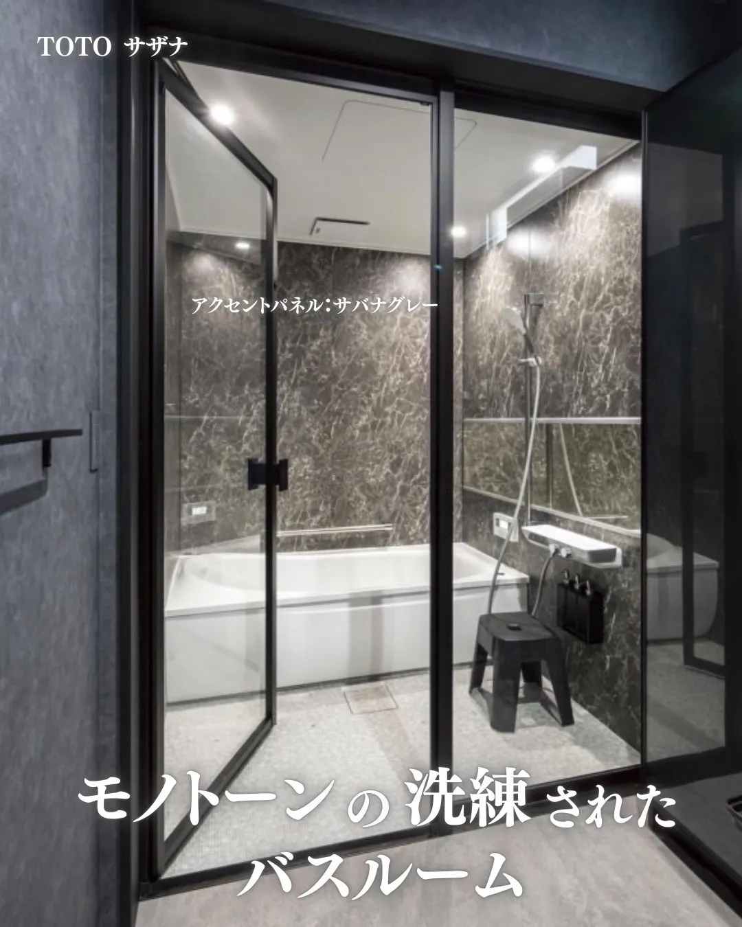 モノトーンで洗練されたバスルーム(TOTOサザナ)