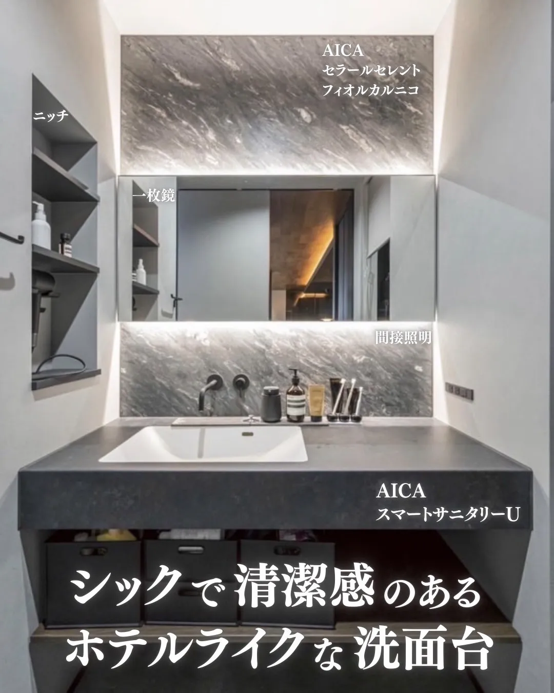 シックで清潔感のあるホテルライクな洗面台(AICA スマートサニタリーU)