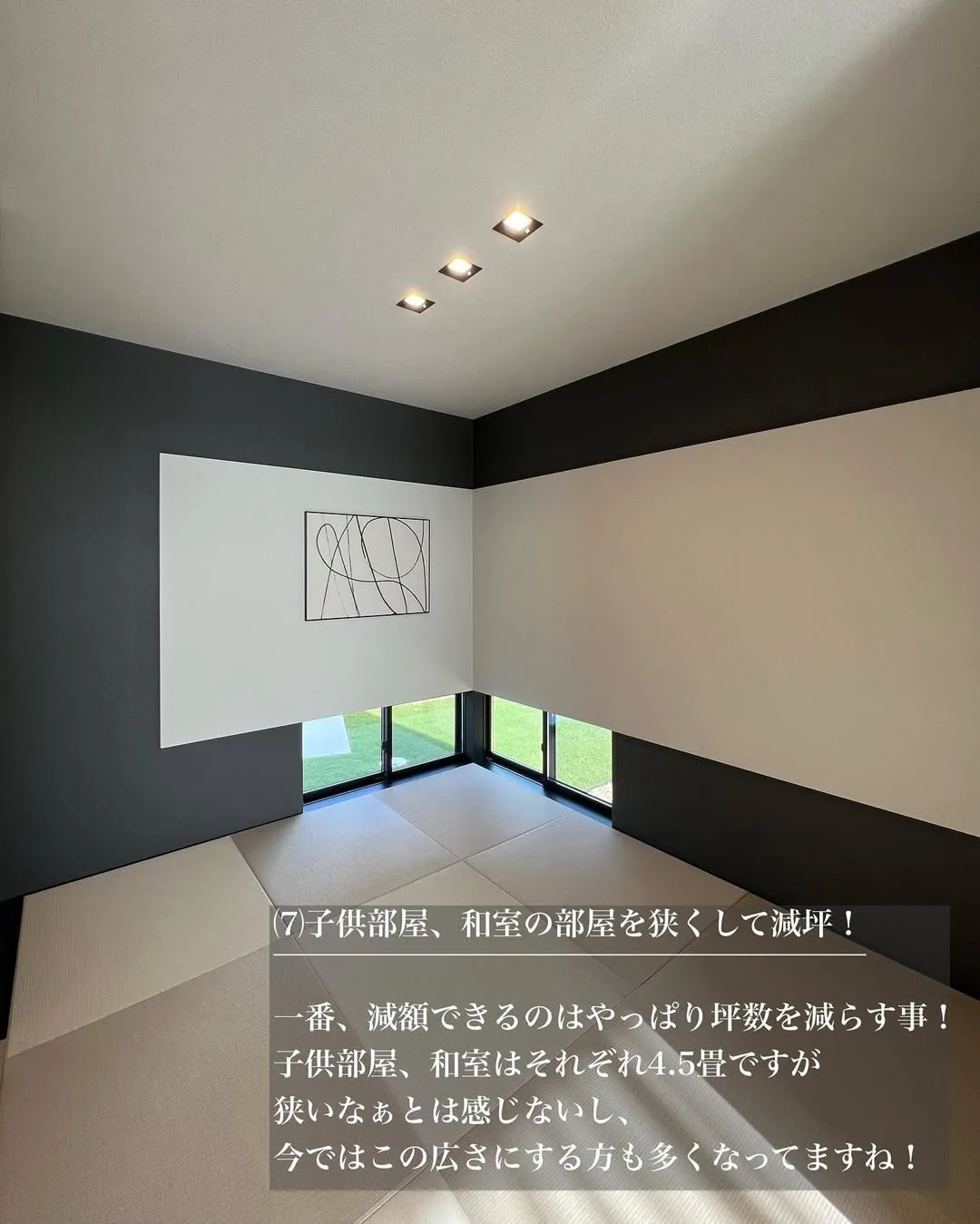 一番効果的な減額方法は、やはり坪数を減らすことです。子供部屋と和室はそれぞれ4.5畳にしましたが、実際に暮らしてみると狭いとは感じません。最近では、この広さを選択される方も増えています。