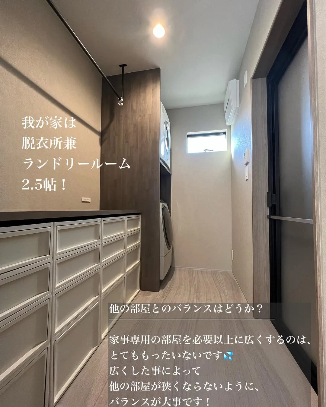 また、洗う→干す→取り込む→たたむ→しまうといった作業を、スムーズに行うためには、できれば3畳の広さがあるといいそうです❗️