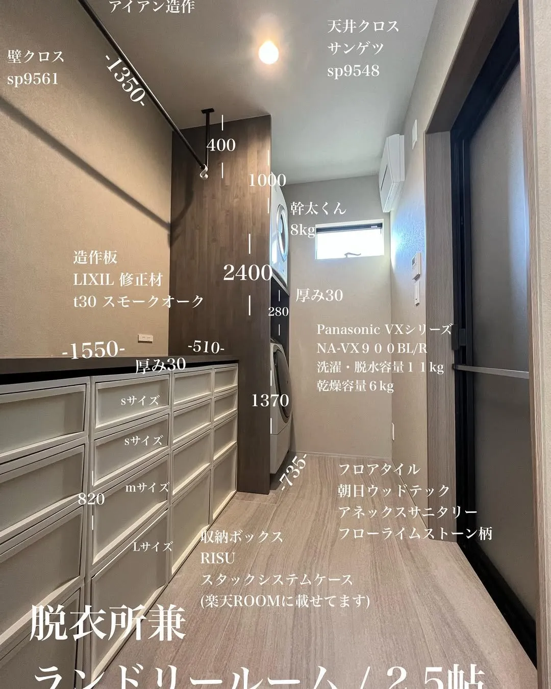 ちなみに、我が家は脱衣所兼ランドリールームで約2.5帖です!