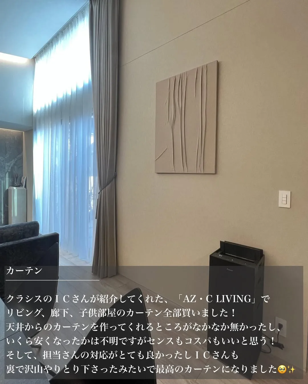 クラシスのインテリアコーディネーターさんが紹介してくれた、「AZ・C LIVING」でリビング、廊下、子供部屋のカーテン全部買いました!